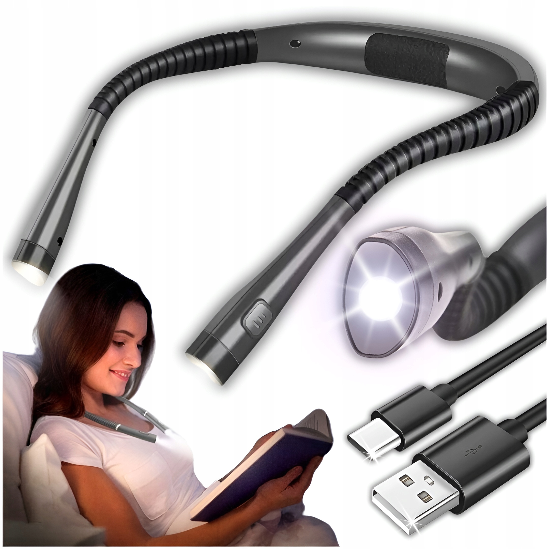 ЛАМПОЧКА ДЛЯ ЧИТАННЯ КНИГ ШИТТЯ НА ШИЮ USB LED 3 КОЛЬОРИ ЕЛАСТИЧНА