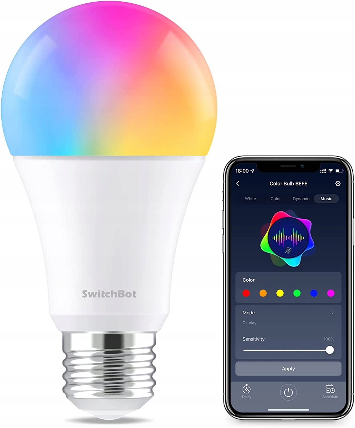 Умная цветная светодиодная лампа SwitchBot, Wi-Fi-лампа E27 с изменением цвета, работает с Alexa, Google Home, RGB Cold Warm, 10 Вт, 800 лм, только 2,4 ГГц, без концентратора [класс энергопотребления G]