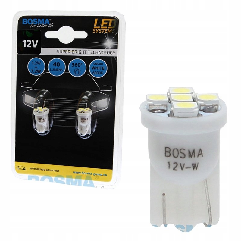 - BOSMA LED 12 В T10 5XSMD3528 БЕЛЫЙ, 2 ШТ.