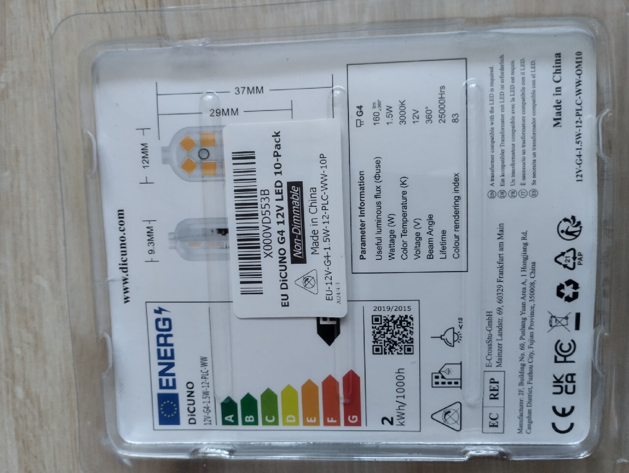 Светодиодные лампы DiCUNO G4, теплый белый 3000 К, 1,5 Вт G4 10 шт.