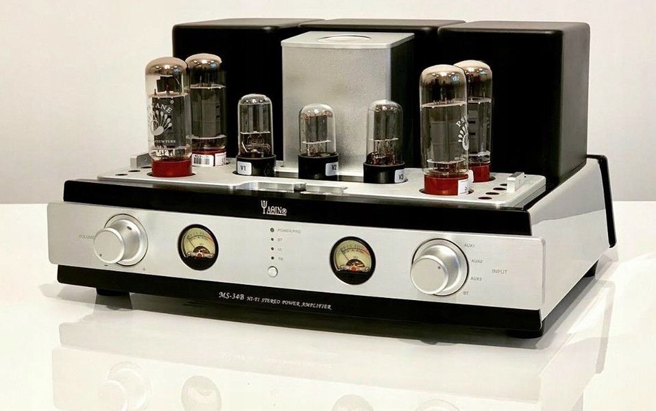 Yaqin MS-34B — новая версия ранее выпускавшегося устройства. Усилитель имеет оригинальный дизайн с двумя круглыми индикаторами наклона на передней панели, корпус выполнен из элегантного черного и серебристого алюминия.