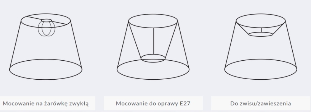 Наше предложение включает в себя абажуры из этой коллекции из разных размеров - для напольных кольцов, ночных ламп, настенных ламп, люстр и для подвесных ламп, установленных на потолке.