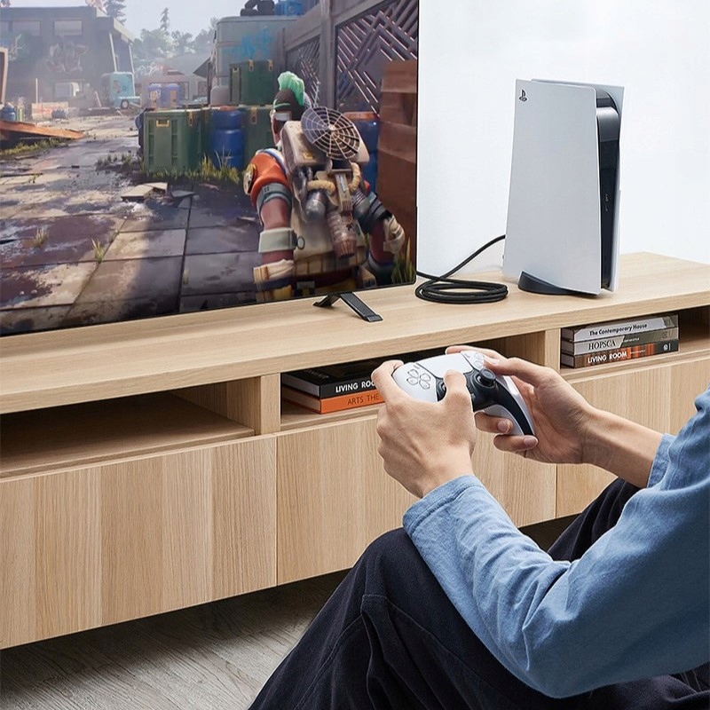 Телевизор, подключенный с помощью кабеля Ethernet 10Gb, позволяет смотреть плавное изображение в разрешении 8K и VR.