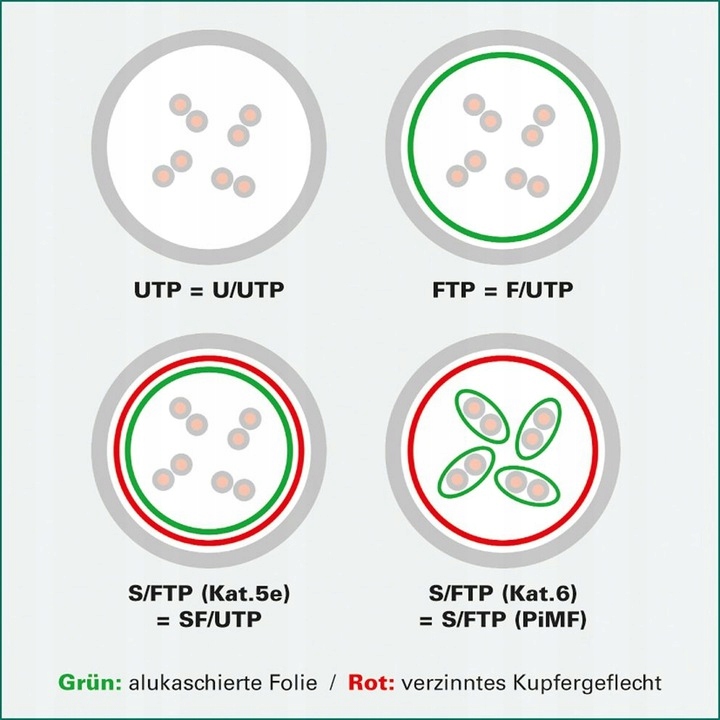 Согласно стандартам для описания экранирования витой пары используется синтаксис xx/yyTP, где yy описывает экранирование пар проводов в кабеле, а xx описывает экранирование по отношению к целому.