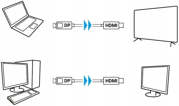 Благодаря своей конструкции кабель Displayport-HDMI передает сигнал только в одном направлении, как показано на рисунке