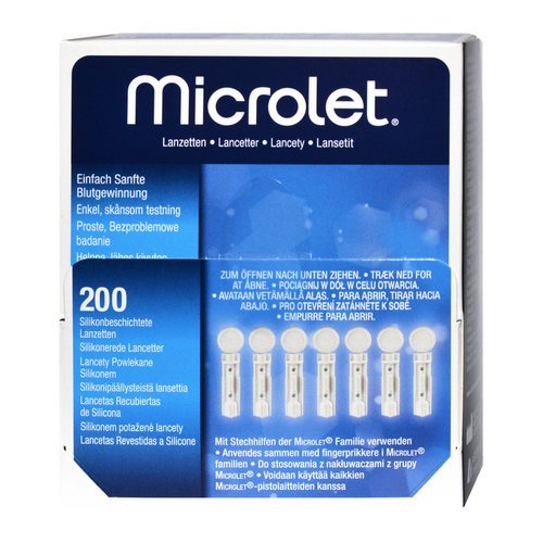 Ланцеты Microlet с силиконовым покрытием доступны в упаковках по 200 штук. Их инновационная структура повышает удобство измерения уровня глюкозы в крови.