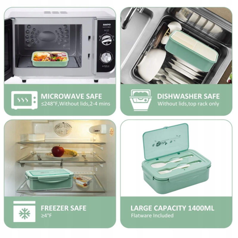 ✅КОНТЕЙНЕР ДЛЯ ОБЕДОВ ДЛЯ ДЕТЕЙ И ВЗРОСЛЫХ: 3 практичных отдельных отделения, легкий, удобный для переноски и хранения, идеально подходит для сбалансированного питания. Ложка и вилка в комплекте, идеально подходят. БОЛЬШАЯ ЕМКОСТЬ: 1400 мл, станет идеальным выбором в качестве переносного контейнера для детского обеда.