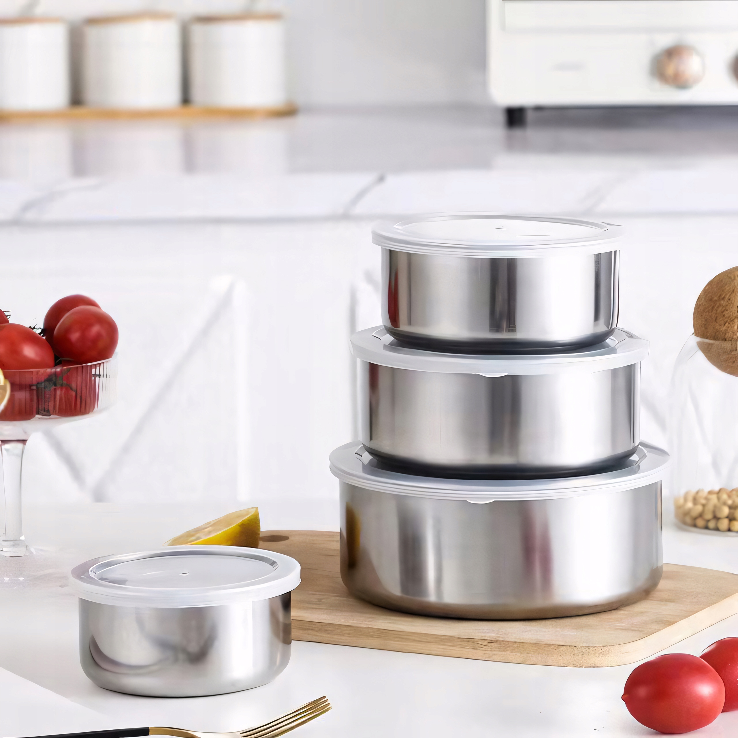 Круглые контейнеры бывают разных размеров, что делает их универсальными и их можно адаптировать к вашим потребностям. В комплект входят 5 штук следующих размеров: 18 х 6 см; 16 х 5,6см; 14 х 5см; 12 х 4см; 10 х 3,5 см. Каждый контейнер оснащен специальной крышкой, что гарантирует безопасное хранение Ваших пищевых продуктов. Это идеальное решение для людей, которые ценят практичность.