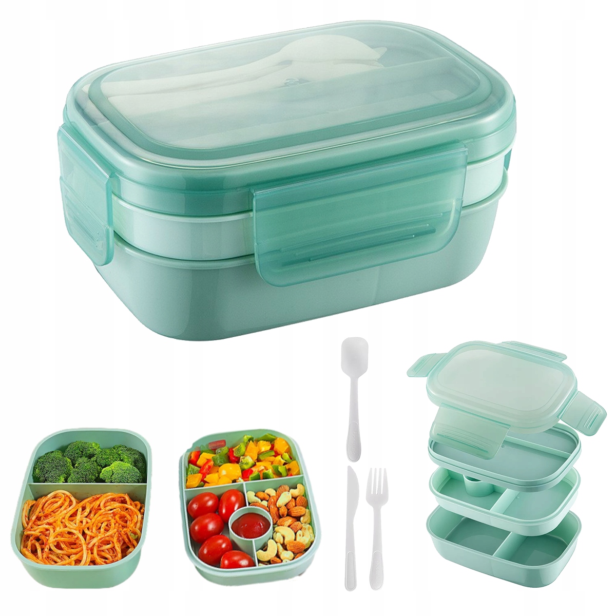 Ланчбокс Ланчбокс с отделениями, 1900 мл Коробка бенто для детей/взрослых, 3 слоя, с пластиковым столовым ножом, вилкой и ложкой, без BPA (светло-зеленый)