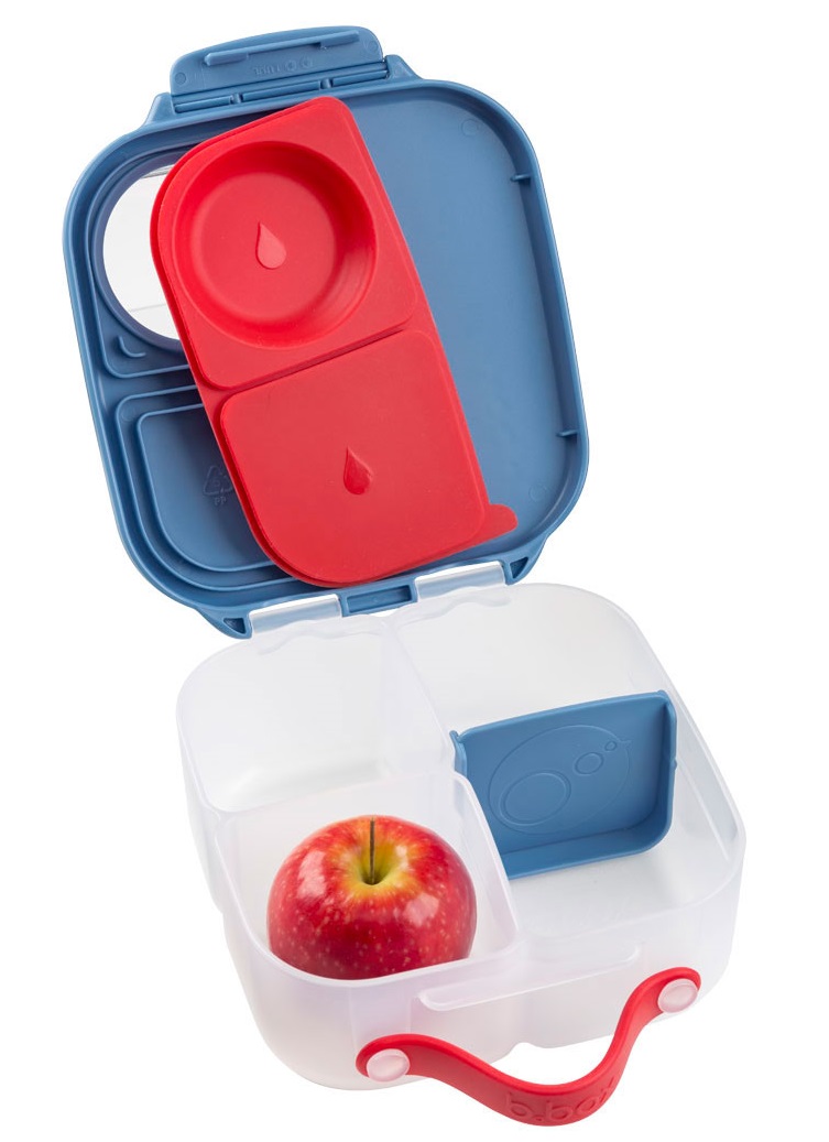 Мини-ланч-бокс b.box аккуратен и удобен. Ребенок может удобно держать его в руке благодаря встроенной ручке, а также положить в рюкзак или сумку. Идеально подходит для школы, когда уроков меньше, или для короткой поездки и длительной прогулки.