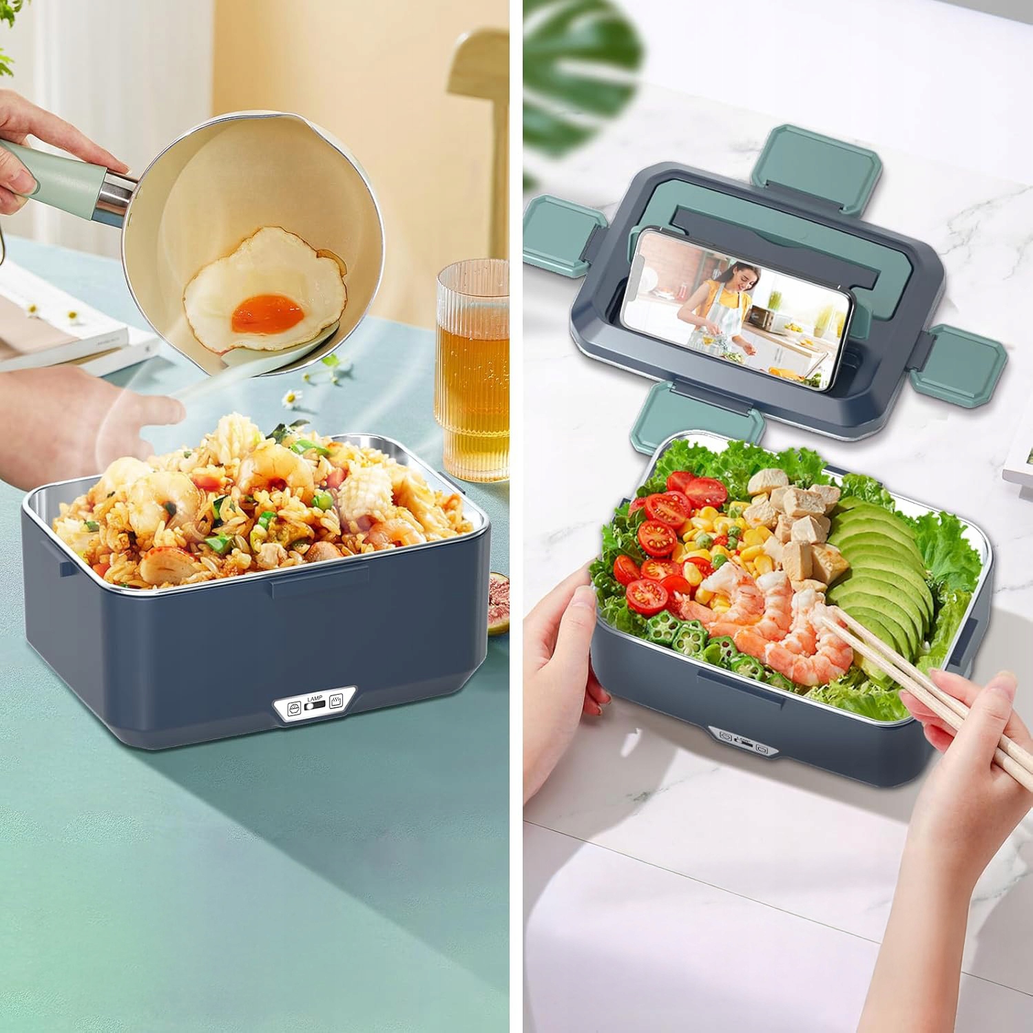 - ✔️Съемный контейнер можно мыть в посудомоечной машине, поэтому его легко мыть. В комплект входят столовые приборы и термосумка для удобной переноски. (Совет: не очищайте нагревательный элемент водой, так как это может вызвать короткое замыкание.)