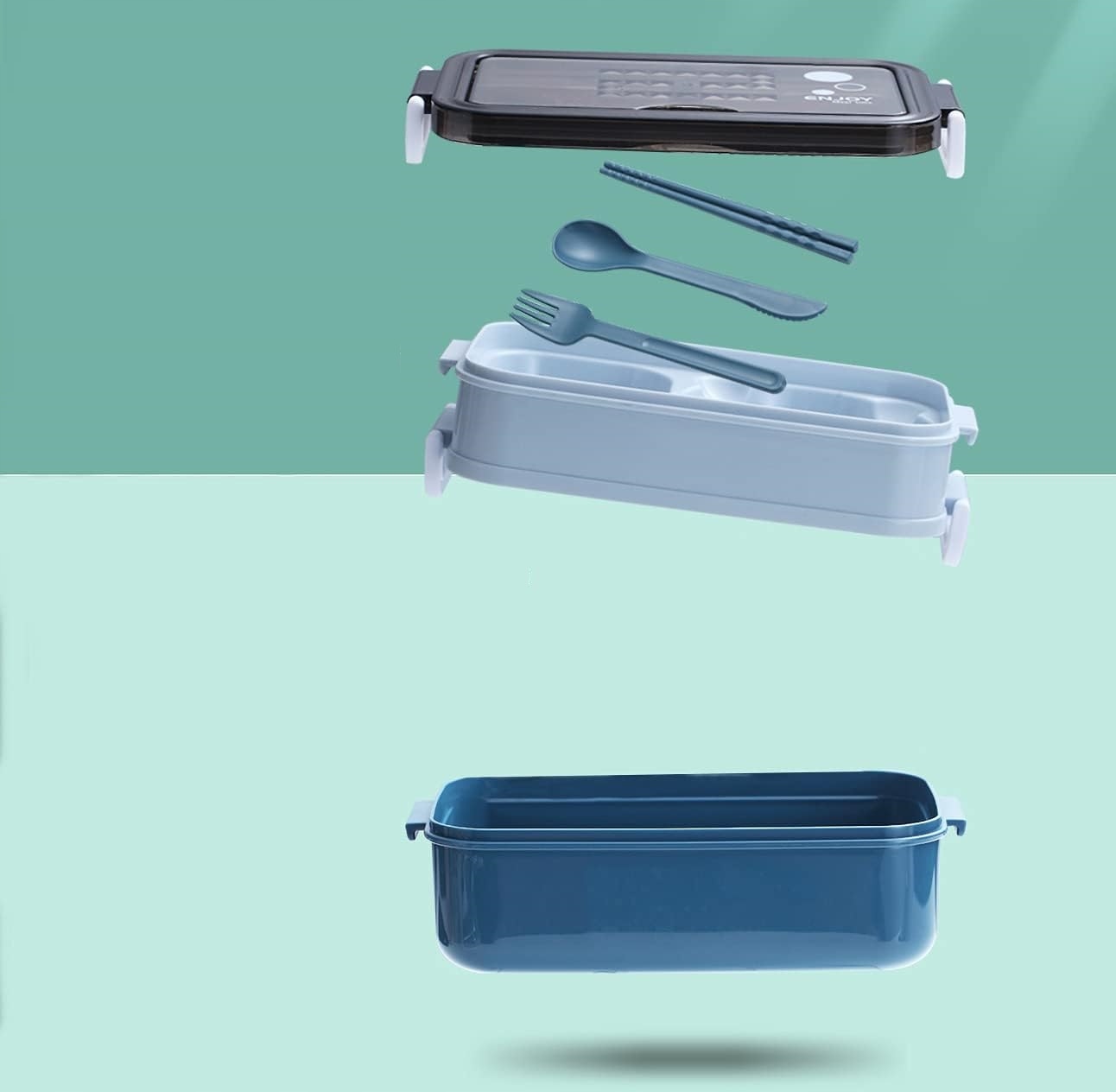 - Набор обеда включает в себя: 1 x два -уровне Bento Box (1100 мл) + 1 Пара палочки + 1 X Spoon + 1 x вилка