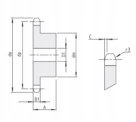 Цепное колесо одинарное со ступицей и закаленными зубьями 10B1 z17