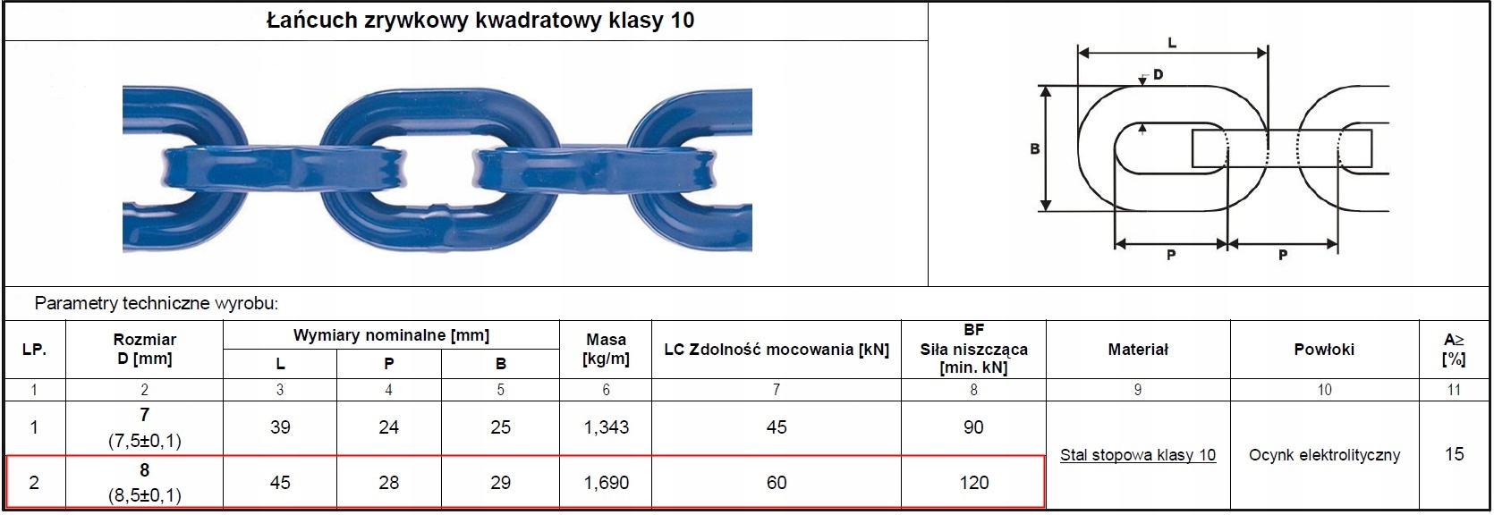 - Толщина цепи: 8,5 мм - «Д» [квадрат] класс G100