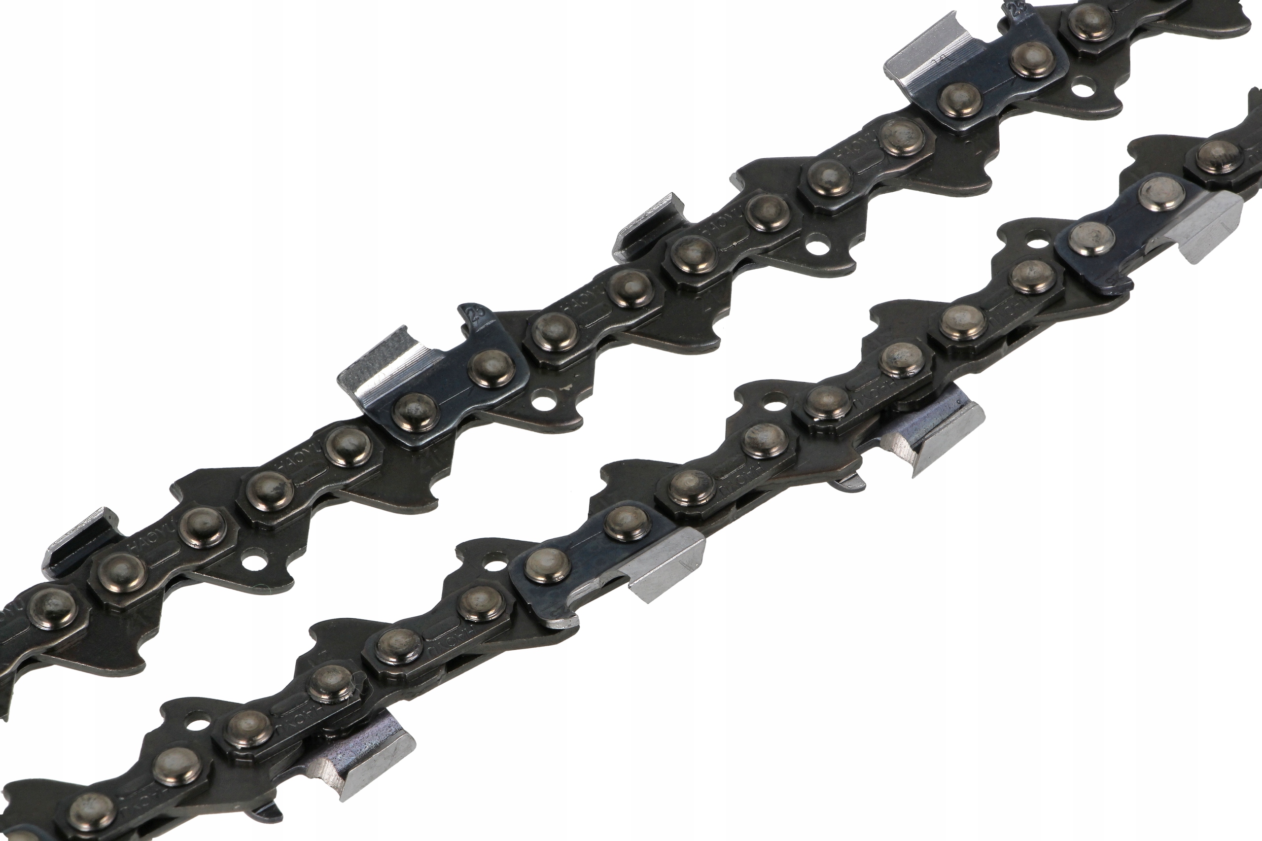 Цельнозубчатые цепи имеют высокий уровень передачи мощности пилы на эффективность пиления за счет режущих зубьев острого профиля. вместе со звеньями, уменьшающими отдачу.