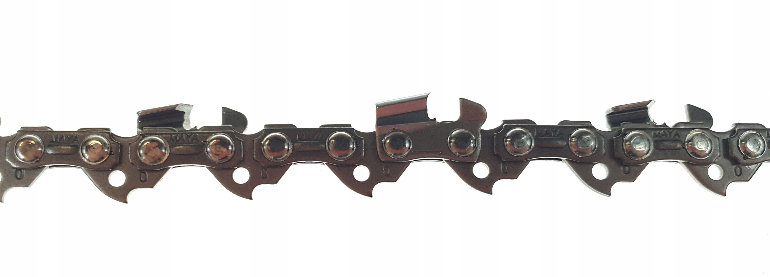 Цепочки Maya предназначены для профессиональных пользователей, которые выполняют свою работу в грязных и экстремальных условиях труда. В песчаных районах, в лесах после пожаров или в ситуациях, когда обычные цепочки разрушены. Сеть майя может продолжаться в этих требовательных условиях до трех раз дольше, чем обычная цепочка. Чрезвычайно прочный хром и современный процесс гальванизации означают, что цепь Майи очень долговечна и остается резкой в течение долгого времени.