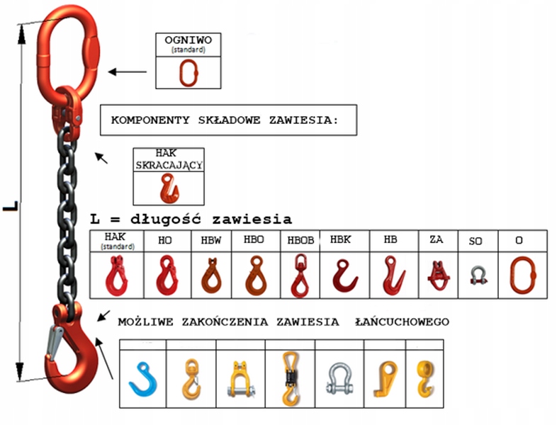 ИСПОЛНЕНИЕ: одноплечий цепной строп, изготовленный в соответствии со стандартом PN-EN 818-4 из сертифицированных компонентов и строповой цепи с пределом прочности 800 Н/мм2 /GR8/ и соответствующий требованиям. Директивы по машинному оборудованию 2006/42 /WE ed. Май 2006 г.