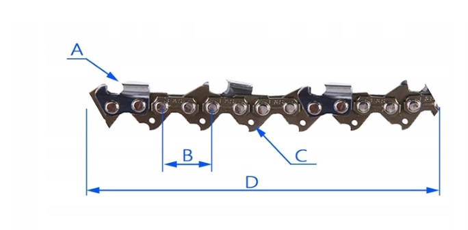- C: Ширина направляющего зуба: 1,3 мм | 0,050 дюйма