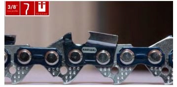 Конструкция цепи снижает вибрацию рукояток пилы. Самым большим преимуществом цепи является режущий зуб, который на 33% длиннее.