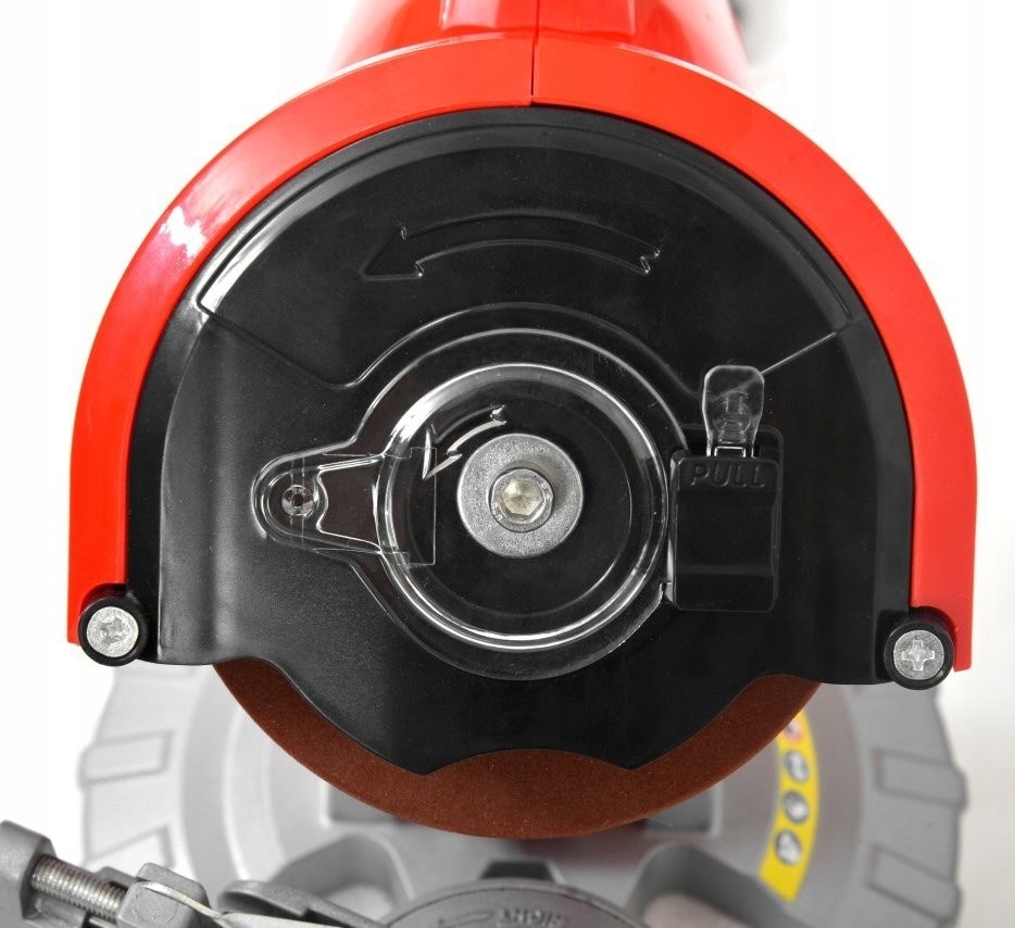 Оснащен наклонными тисками, благодаря которым можно затачивать цепь, не меняя места крепления. Имеет натяжитель и точную шкалу для заточки цепи.
