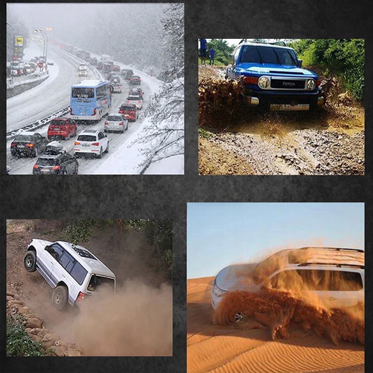 Эта защитная планка для шин изготовлена из высококачественной стали, что обеспечивает долговечность, стойкость к истиранию и отличное сцепление на скользких поверхностях. Он отлично работает по снегу, грязи и при движении по неровной местности.