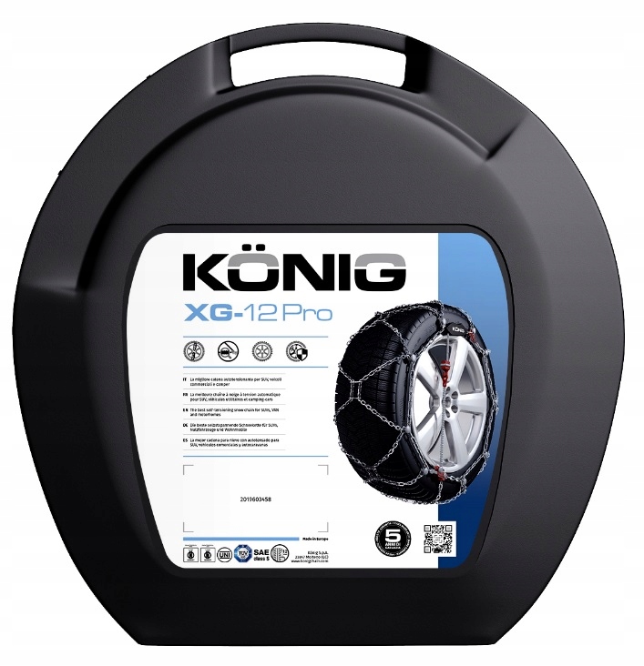 - Высококачественные, полностью профессиональные цепи противоскольжения с натяжителем от König для использования в грузовых фургонах, внедорожниках и внедорожниках.