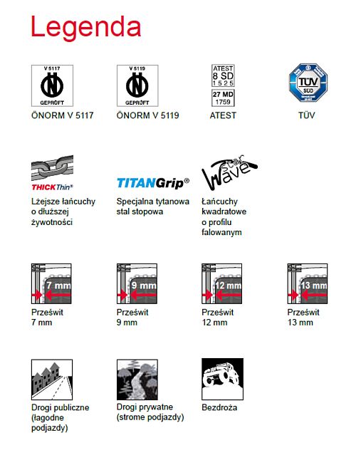 Перед зимним сезоном вам следует попрактиковаться в надевании цепей. Пожалуйста, прочтите руководство пользователя и выполните пробную сборку. У нас появится новый опыт, и мы сможем гораздо лучше демонстрировать их в зимних условиях. Когда мы находимся в дороге зимой и условия сложные, нам следует заранее надеть цепи, чтобы избежать ситуации, когда машина начнет буксовать и застрянет на дороге. Лучше всего устанавливать цепи на ровной площадке, в безопасных местах, не препятствующих вождению других пользователей. Цепи установлены на колесах ведущего моста. В автомобилях, у которых задняя ось является ведущей, также рекомендуется устанавливать цепи на рулевую ось, чтобы улучшить управляемость автомобиля при движении по склону. Для автомобилей с полным приводом следуйте рекомендациям производителя. В случае цепей без самонатяжителей проверьте их соосность и натяжение после проезда 50 м. При езде на цепях не превышайте скорость 50 км/ч. В дальних поездках регулярно проверяйте состояние цепей. Чтобы продлить срок службы цепей, их следует перевернуть при следующей установке, избегать движения по «черным» дорогам, очищать их после использования и сушить перед хранением.