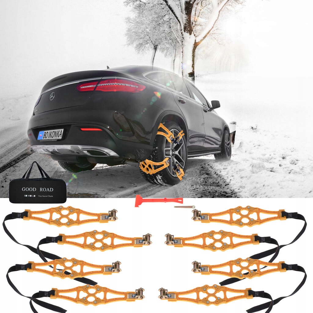 ЦЕПИ СНЕЖИВАНИЯ, ПРОТИВОСКОЛЬЗЯЩИЕ КОЛЕСНЫЕ КОЛЕСКИ, 8-КОМПОНАЛЬНЫЕ СНЕЖНЫЕ ШИНЫ.