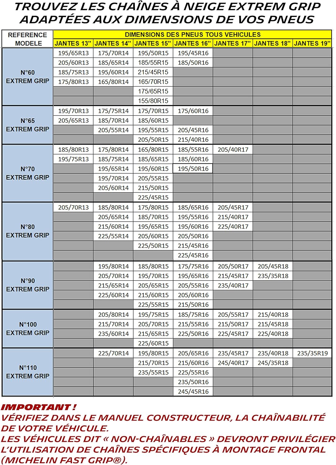 Технология асимметричных цепей Michelin позволяет им всегда находиться в контакте со снегом. В сочетании с звеньями квадратного сечения, которые повышают сцепное усилие и эффективность торможения, вы будете хорошо подготовлены к безопасному вождению по снегу и льду.