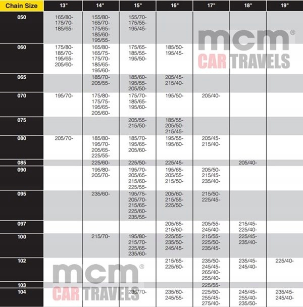 ниже полной таблицы размеров цепей Thule