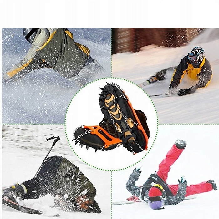 - Эффективная защита от скольжения и падения благодаря использованию цепи и 8 крючков из закаленной стали. Они не утомляют ноги, они очень легкие! Они хорошо повторяют форму обуви.