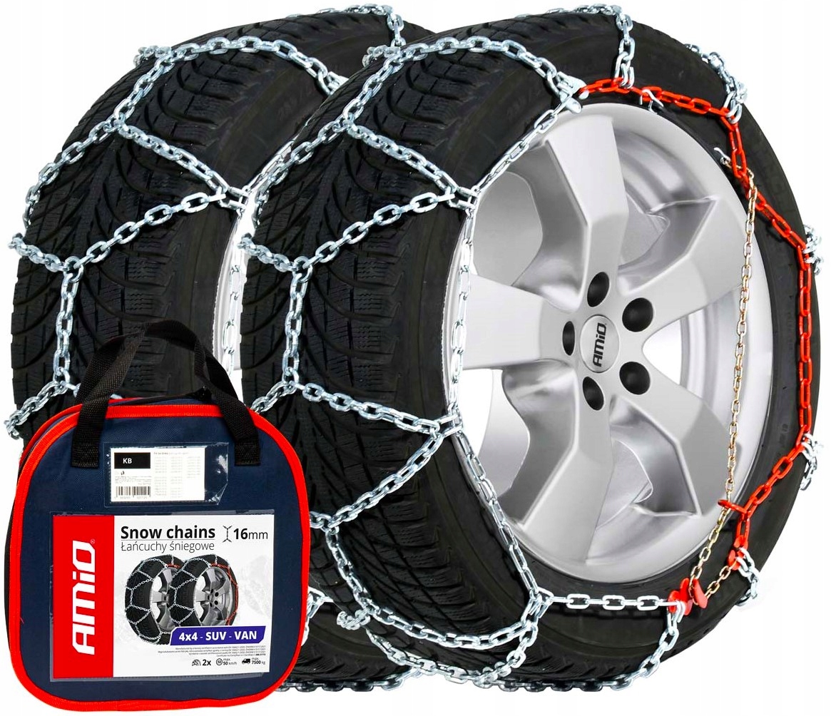 - Высококачественная сталь и звенья квадратной формы обеспечивают достаточную прочность и хорошее сцепление с грунтом на заснеженных и обледенелых дорогах