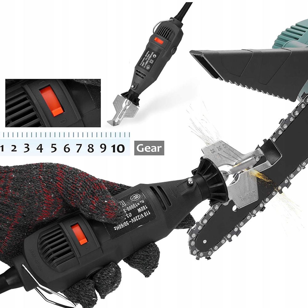 - 🔧 - Благодаря5 скоростям, регулируемым от 8000 до 35 000 об/мин, эта мощная машина мощностью 180 Вт можно заточить затупившуюся цепь бензопилы всего за несколько минут.