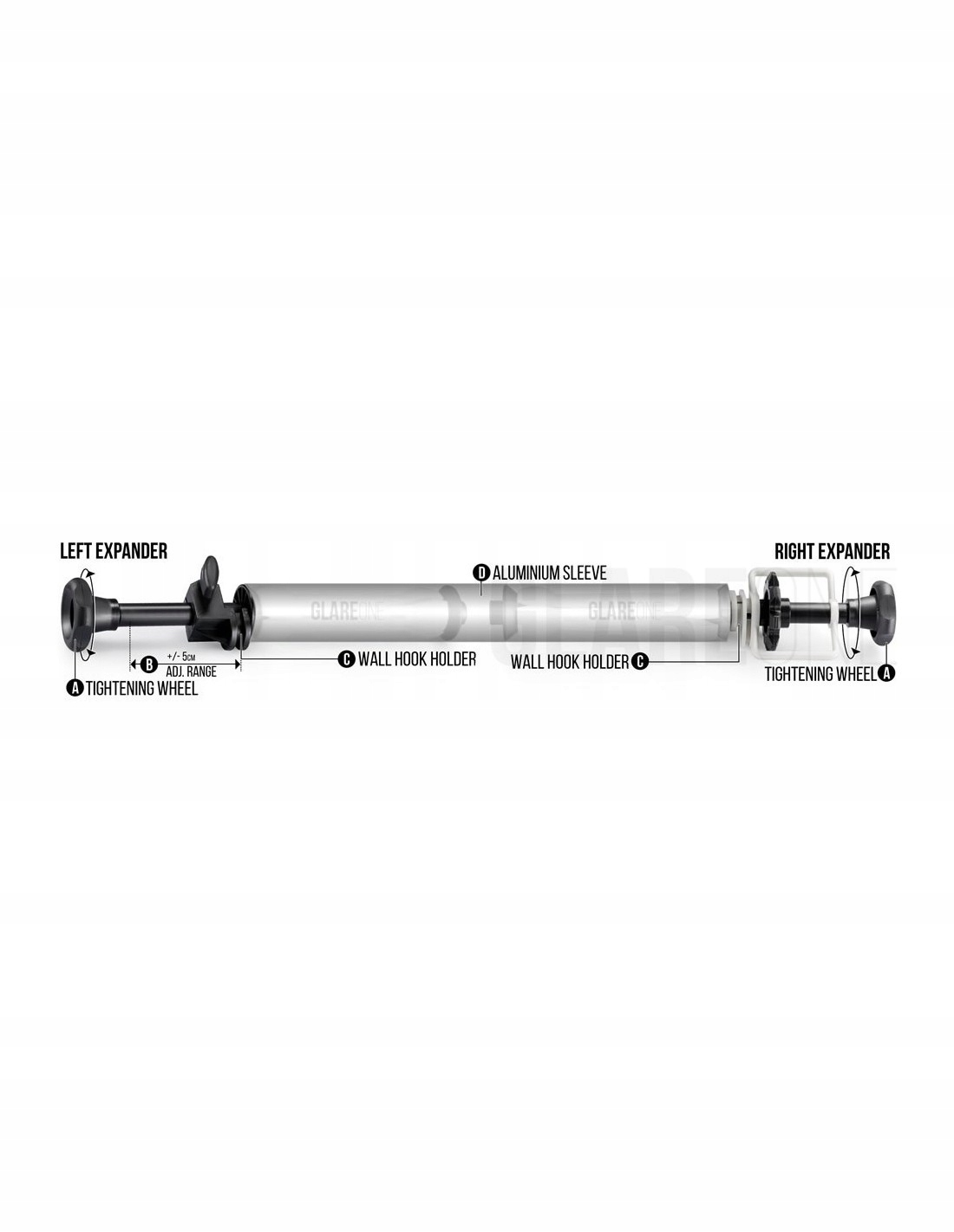 - правильно спланировать расстояние между монтируемыми ручками/крючками на стене/потолке – оно должно составлять примерно 3см. на 8см шире от рукава с намотанным фоном - левый эспандер помогает компенсировать разницу в 5 см по ширине между фоном с эспандерами и настенным креплением.