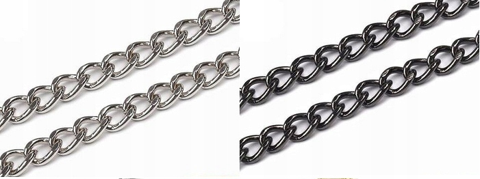 Прочная и долговечная цепочка с овальными звеньями, поверхность которых дополнительно отполирована, что придает им неповторимый блеск. Цепь не оснащена карабинами, а отдельные звенья можно немного увеличить или разъединить с помощью плоскогубцев. Из него можно сделать сумочки, цепочку для брюк и т.п.