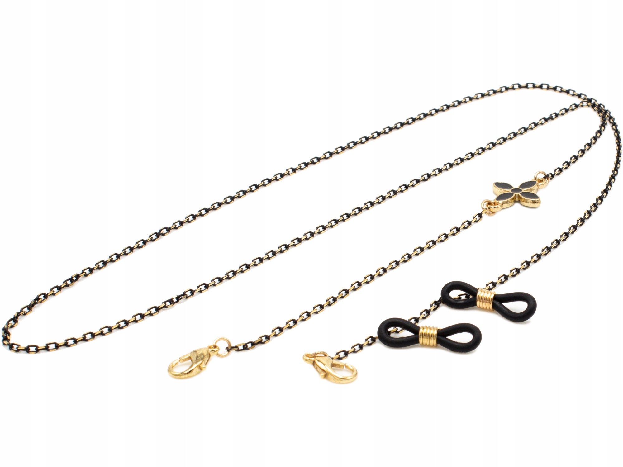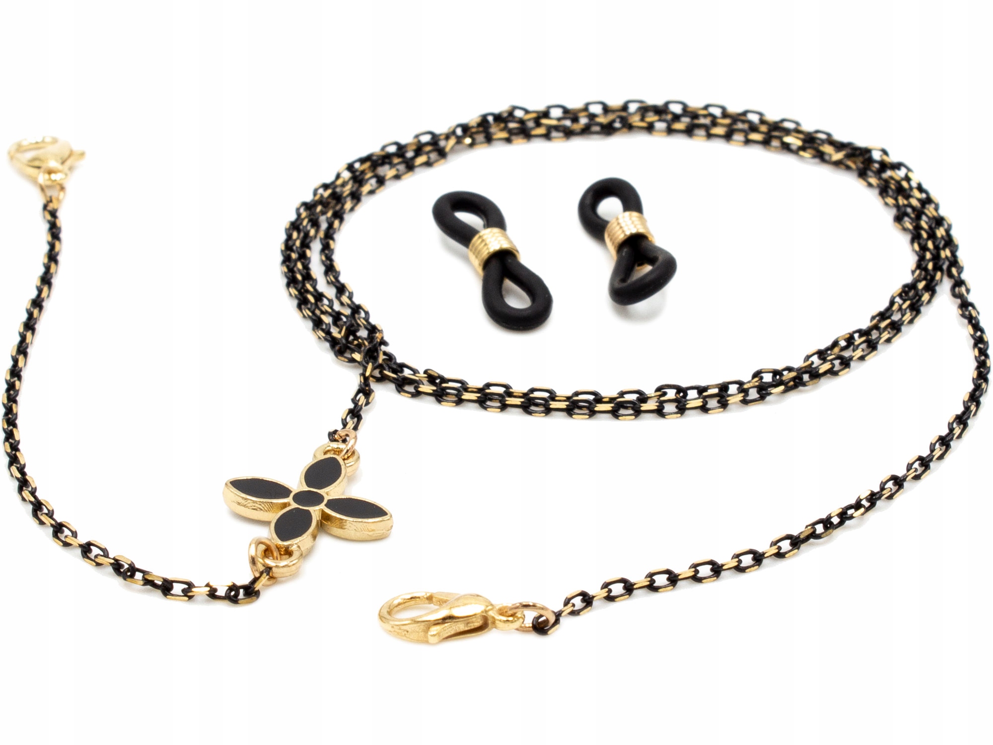 Наша цепочка для очков – это модный аксессуар, который добавит стиль и подчеркнет ваш образ. Цепочка – это не только красивое украшение, но, прежде всего, она защищает ваши очки: резиновые клипсы на концах цепочки предотвращают появление царапин на дужках очков. Благодаря застежкам на обоих концах цепочки ее также можно использовать для масок. Украшен цветком на одной стороне цепочки.