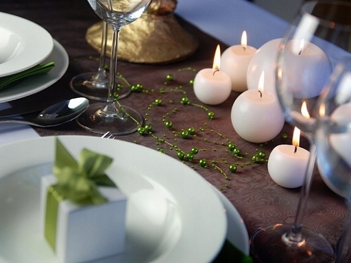 Органза – тонкий материал, который можно использовать по-разному при обустройстве стола. Его можно разложить посередине стола, поперек него или поцарапать между блюдами. Он прекрасно смотрится на елке, нарядно и воздушно заполняя пространства между украшениями на ветках. Идеально подходит для упаковки крупных подарков (можно завязать красивым бантиком).