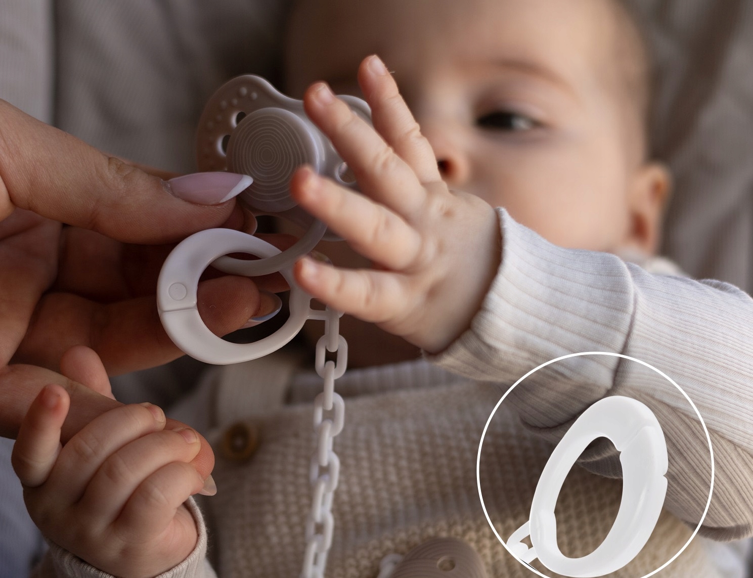 Цепочка для соски LOVI оснащена очень практичным зажимом, позволяющим надежно и надежно прикрепить соску к одежде ребенка.