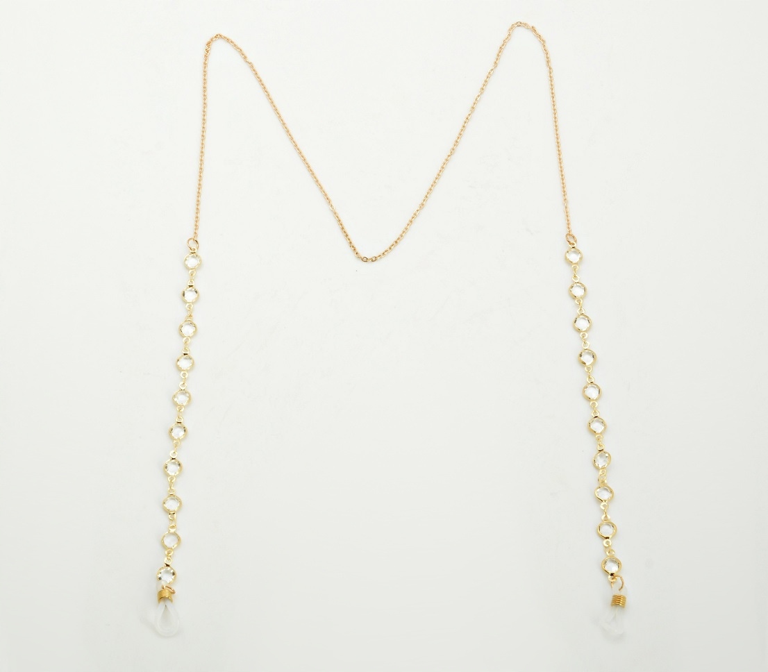 Золотая цепочка, кулон для очков с прозрачными цирконами