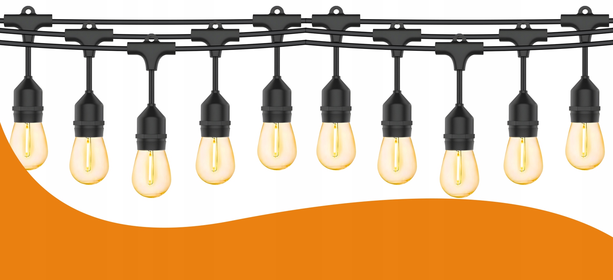 ✔️ Садовая гирлянда длиной 10 м с 10 цоколями для лампочек Е27 (теплые лампочки в комплекте).