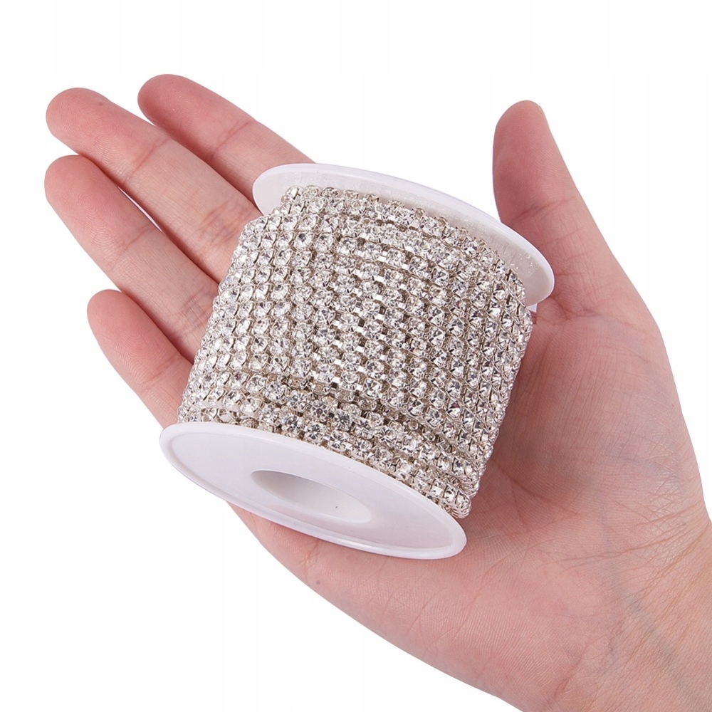 ⭐️Выполнена из страз, основа из латуни, прочная, износостойкая.Красивую цепочку со стразами можно использовать для создания модных украшений или сделать самостоятельно украшения на сумочку или другие украшения, можно использовать для различных праздничных украшений, свадебные украшения, свадебная фата, костюмы, одежда, украшения для тортов, свечи, вазы, бутылки и т. д. Простота в использовании: можно отрезать ножницами до любой длины, просто и удобно.