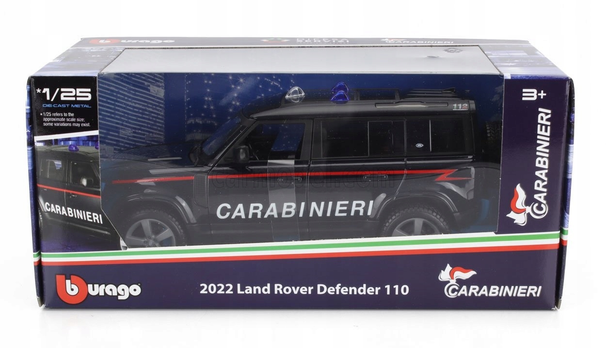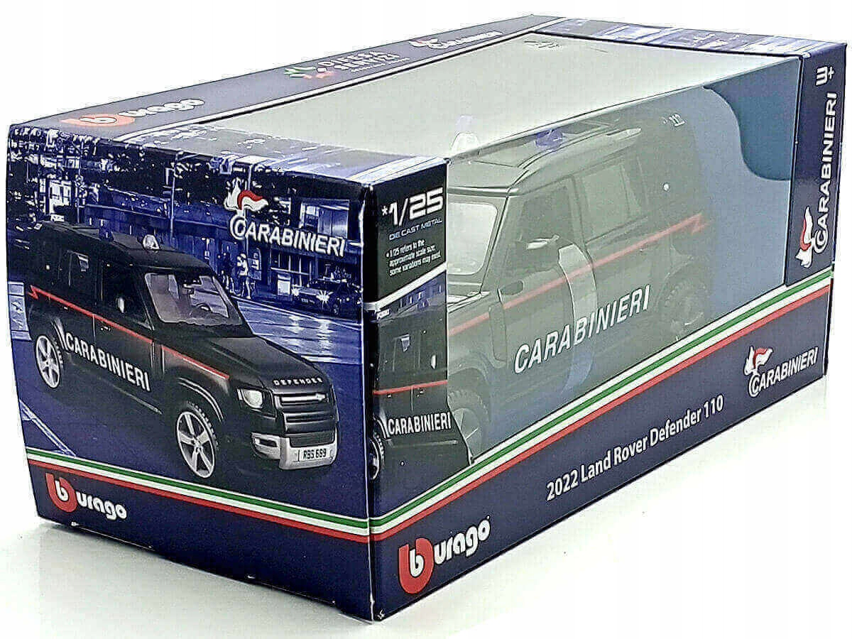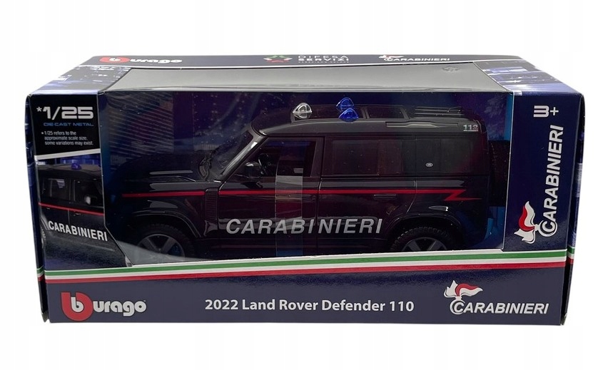 Collector's metal model Land Rover New Defender 110 Carabinieri from 2022 on a 1/24 scale produced by a well-known, valued and reputable company Bburago