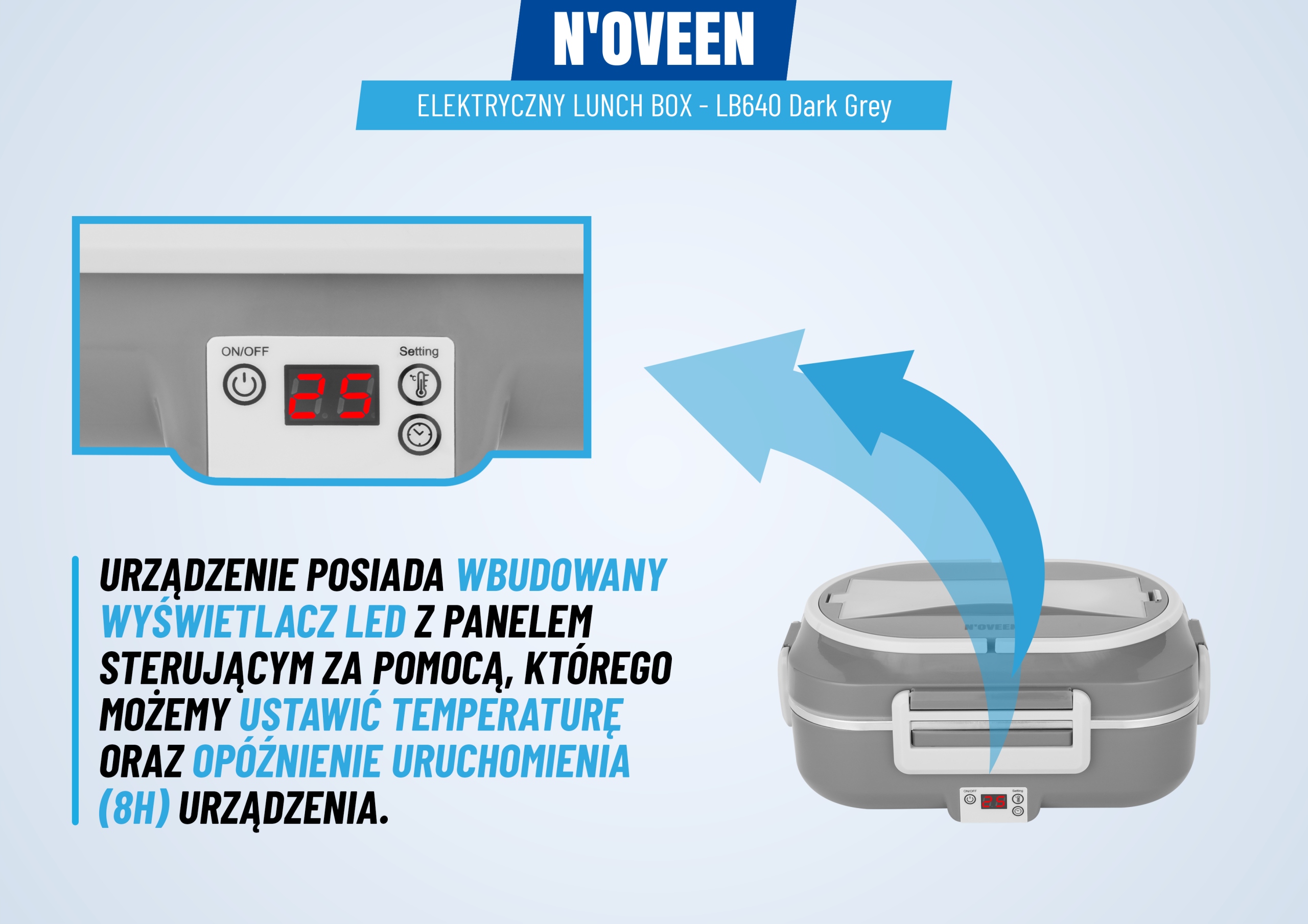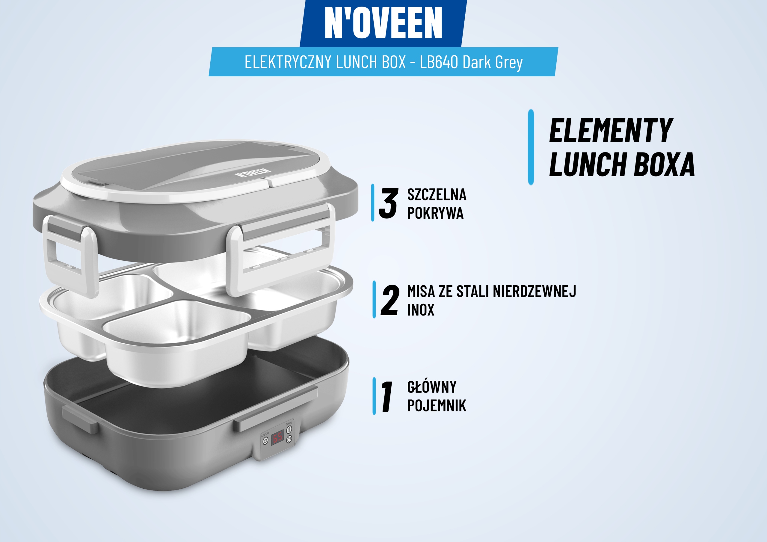 Электрический подогреватель еды Lunch Box LB640 Dark Grey – это сочетание функциональности и мобильности. Прочно и эстетично выполненное устройство оснащено нагревательным элементом PTC, позволяющим нагревать пищу до 60°С за 20 минут.