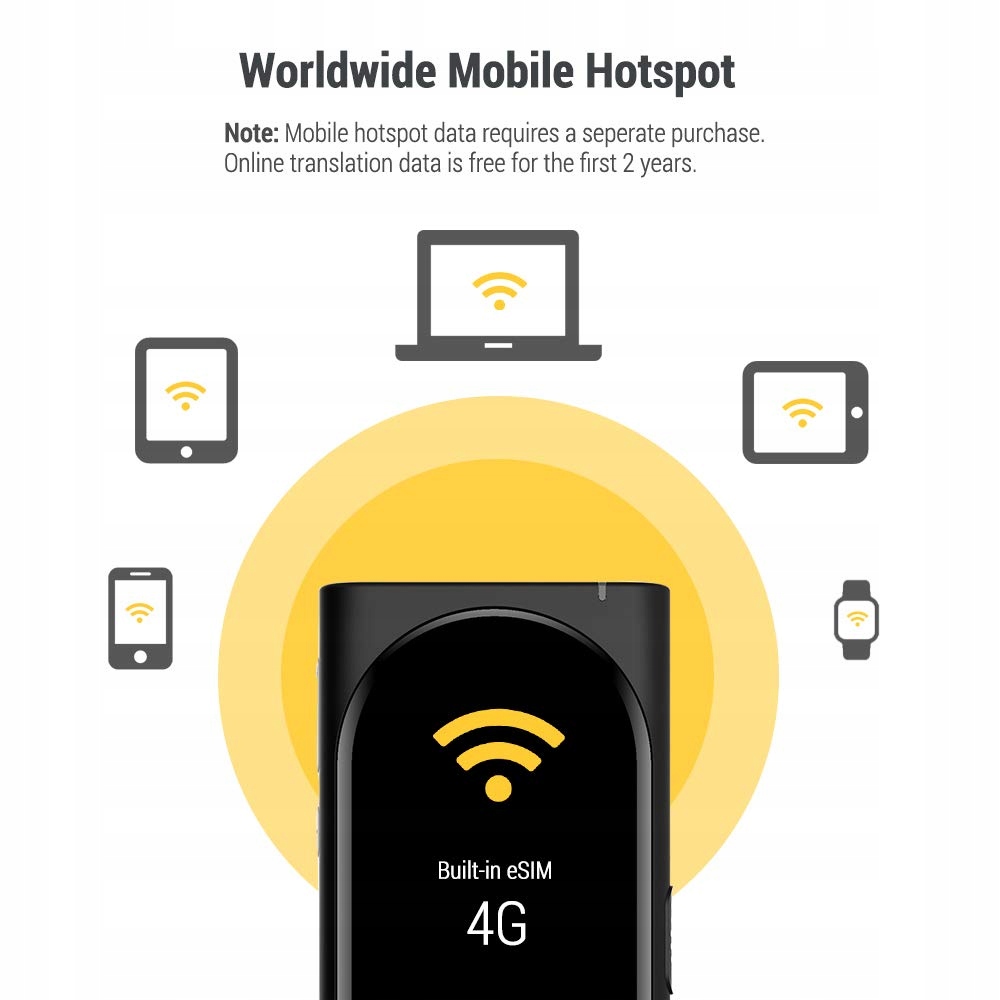 Устройство активирует безлимитный интернет-пакет для переводчика сразу после включения, который действует в течение 2 лет. По истечении этого времени вы сможете пользоваться устройством через Wi-Fi или приобрести дополнительные пакеты. Интернет в Переводчике работает в 70 странах.