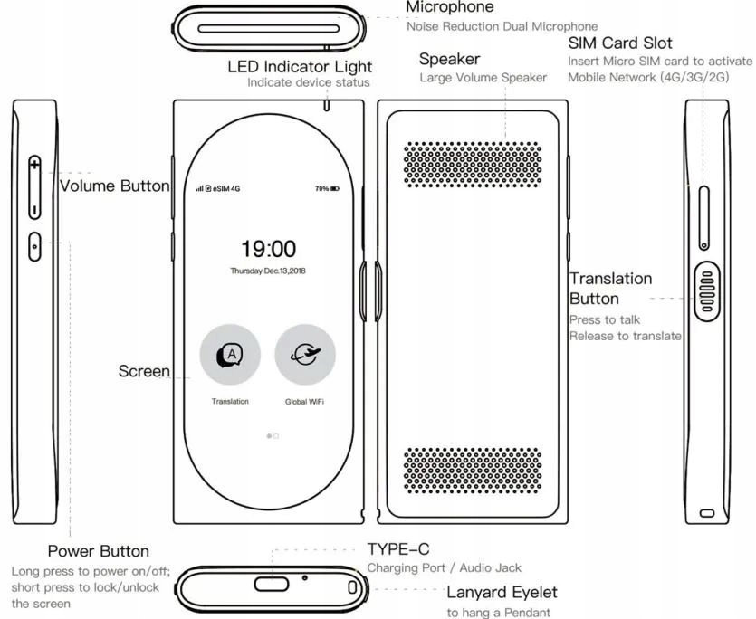 LANGOGO Translator имеет ВСТРОЕННЫЙ ДОСТУП В ИНТЕРНЕТ для перевода в течение ДВУХ ЛЕТ с момента покупки! Таким образом, он имеет доступ ко всем (100) языкам в 70 странах.