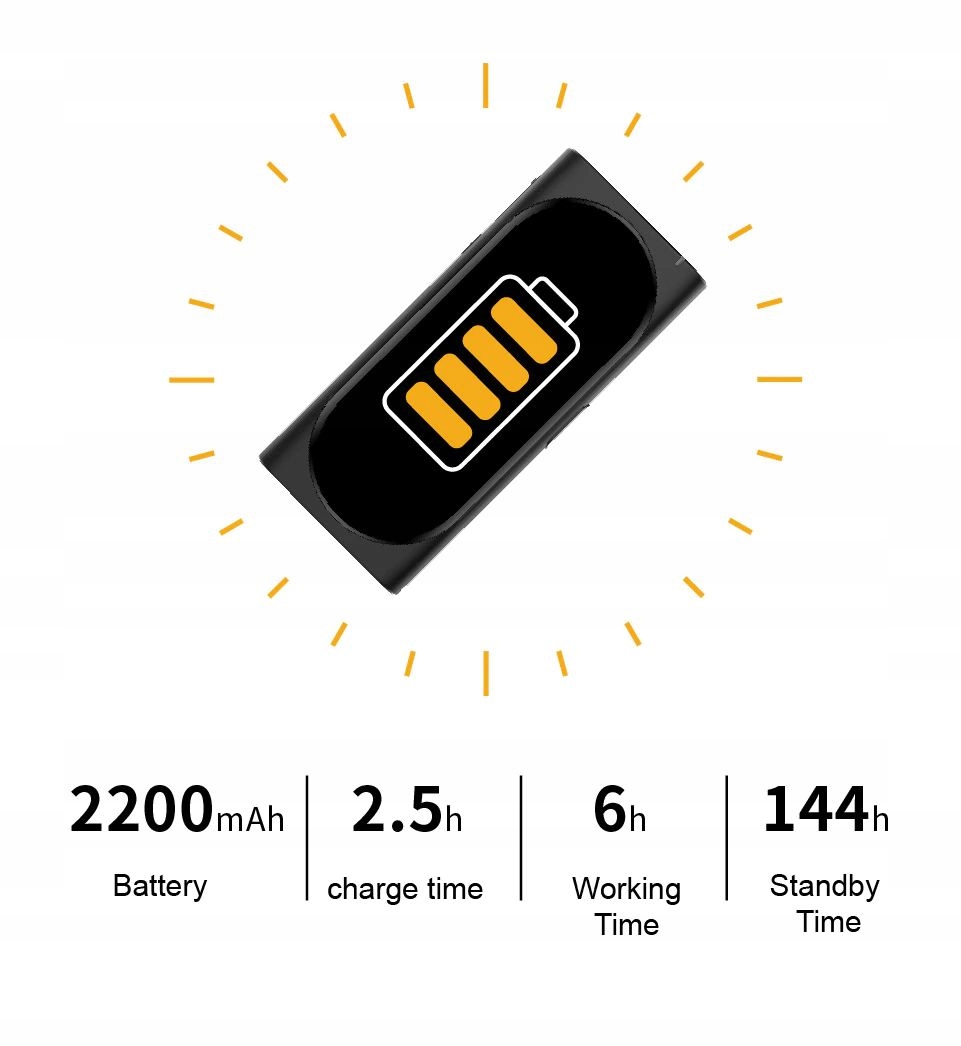 - Время зарядки: 2,5 ч (5 В, 1 А)