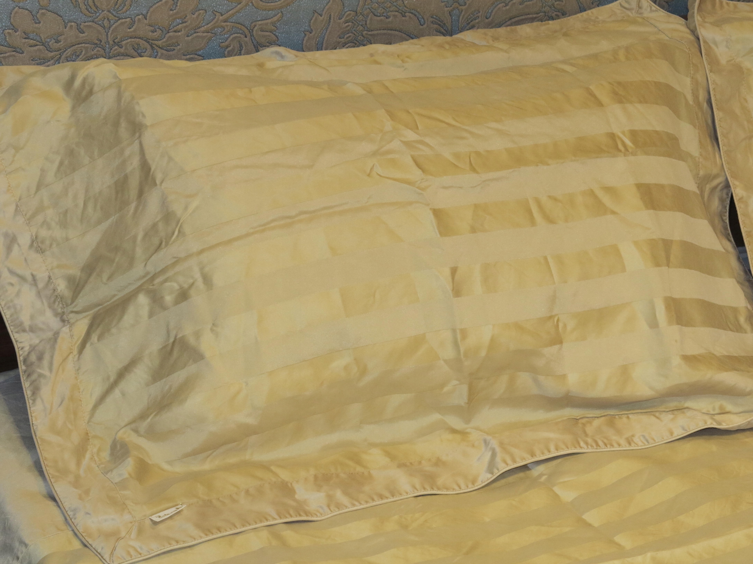 LANOIRE - КОМПЛЕКТ РОСКОШНОГО ДВУСПАЛЬНОГО ПОСТЕЛЬНОГО ПОСТЕЛЬНОГО ИЗ ЧИСТОГО ШЕЛКА - ЗОЛОТОЙ ЦВЕТ.
