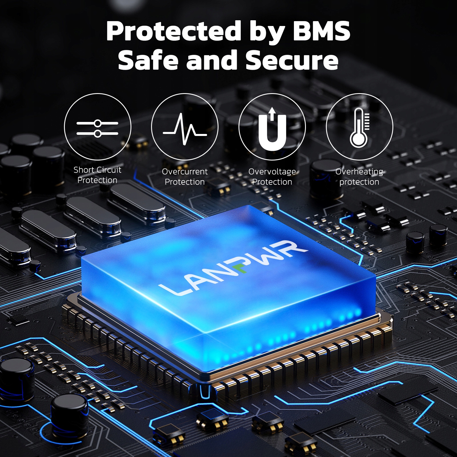 Благодаря системе BMS на 100 А аккумулятор Lanpwr обеспечивает полную защиту от перезаряда, глубокого разряда, перегрузки по току, перегрева и короткого замыкания, а также является водонепроницаемым по стандарту IP65. Низкая скорость саморазряда обеспечивает надежную работу как в помещении, так и на открытом воздухе.