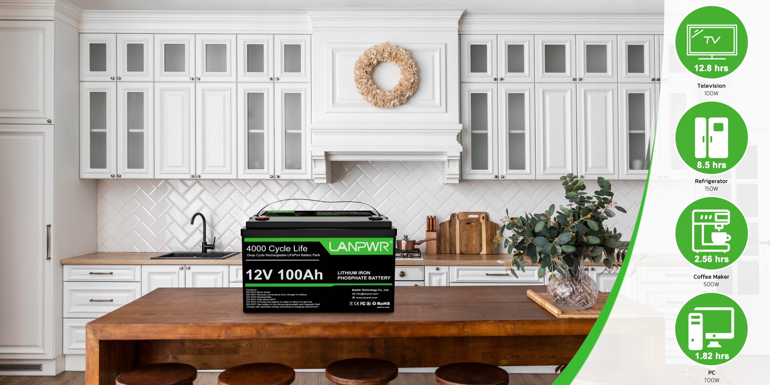 Ощутите высочайшее качество с литиевой батареей Lanpwr 12 В, 100 Ач, оснащенной высококачественными автомобильными элементами LiFePO4, которые обеспечивают повышенную плотность энергии и стабильную выходную мощность. Превосходя по производительности батареи SLA/AGM, он может похвастаться впечатляющим 10-летним сроком службы с более чем 4000 циклами при 100% DOD. Безопасность проверена UL, значительно превышает типичный срок службы в 200–500 циклов и трехлетний срок службы альтернатив SLA/AGM.