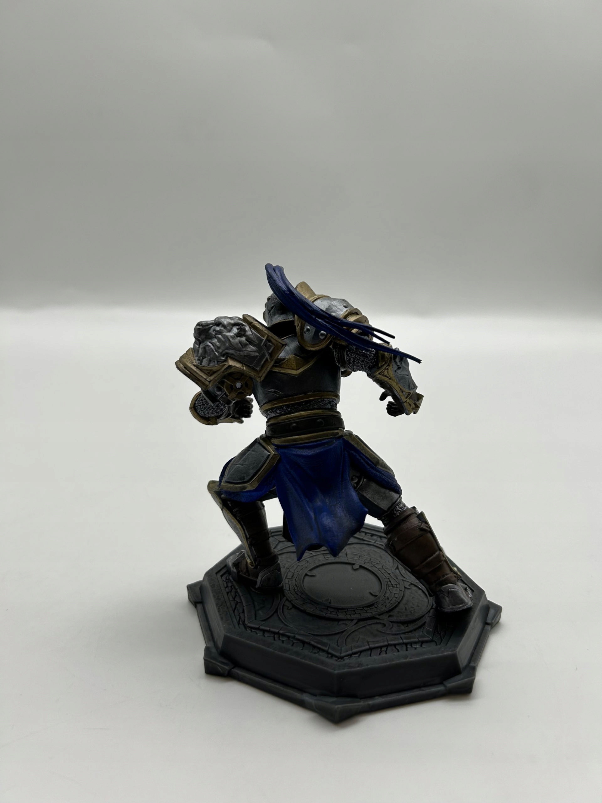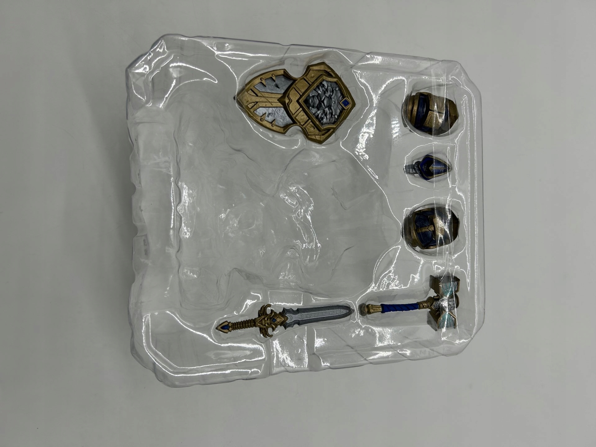 В комплект входят: [1 фигурка, 2 оружия, сменные части брони, 1 щит, дополнительная голова и пьедестал]